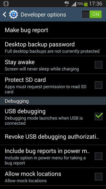 - Go to the "Developer Options", enable it at the top to "ON" state, and check the "USB debugging" option