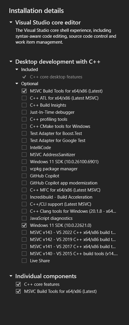 - MSVC Build Tools for x64/86 (Latest)
